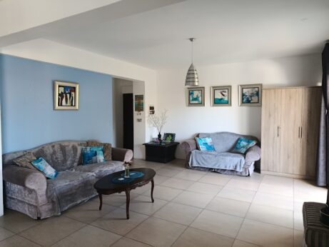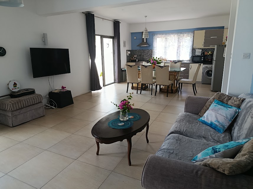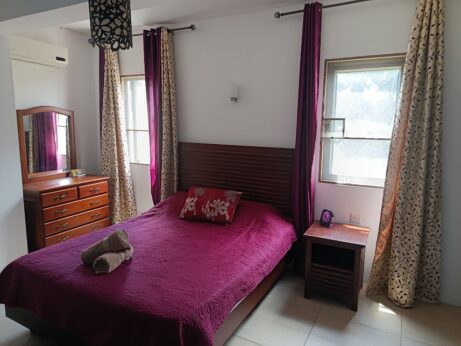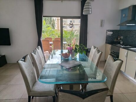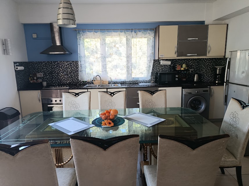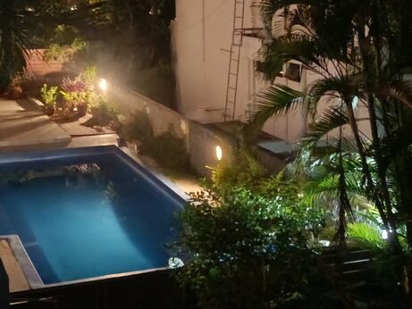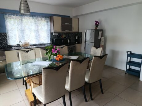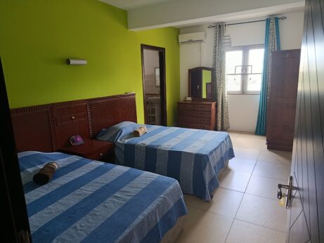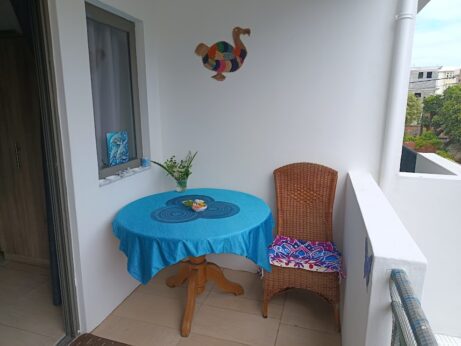 Nabízený byt je suchý, vzdušný, světlý a dostatečně prostorný - 160 m². Nachází se v prvním patře, je otočený do klidné ulice a má hezký výhled. Je vzdálený pouhých 150 metrů od pláže, 50 metrů od obchodu, stanoviště taxi a autobusové zastávky. Má tři prostorné ložnice, každá se svou vlastní koupelnou. Všechny tři ložnice jsou zamykatelné zevnitř, mají klimatizaci, sítě proti komárům v oknech a ke každé posteli je k dispozici i moskytiéra. Nicméně po té, co jsme nainstalovali sítě do oken, už nejsou potřeba. Společné prostory zahrnují: kuchyňský kout, (vybavený filtry na vodu, pračkou, lednicí, plynovým sporákem, elektrickou troubou, mikrovlnkou, toustovačem, varnou konvicí, překapávačem na kávu, nádobím,...), jídelní kout s velkým stolem až pro osm osob a obývací část s televizí, plus dva balkony. První balkon je zařízený spíš technicky, tzn. že jsou zde sušáky na prádlo a úklidové pomůcky, nicméně i zde je odpočinkový koutek. Druhý balkon, určený k relaxaci a stolování na čerstvém vzduchu, je stíněný palmami, tudíž je i více chráněný před sluncem, větrem i případným deštěm.