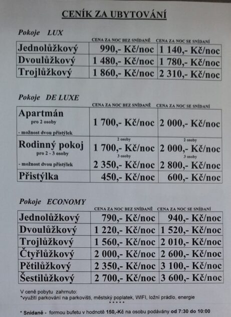 Rozklikni ceník ubytování