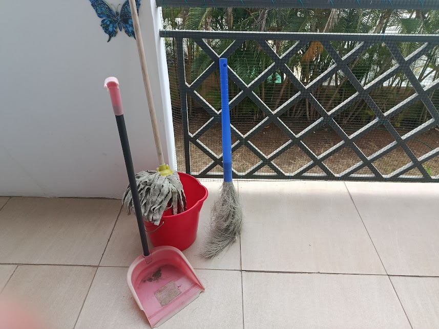Úklid. Pravděpodobně, obzvlášť vy ženy, záhy zjistíte, že precizní úklid není silnou stránkou místních klízeček. Vždycky mě to trochu rozlobí, ale pak vezmu jar, písek, houbičku a vypucuji si to raději sama, protože ony stejně nechápou, co že se mi to nelíbí, vždyť je to perfekní!!! Navíc jejich pracovní výbavení vypadá přibližně tak, jako na obrázku. Doporučuji nechat si vyměnit ložní prádlo a ručníky a uklízet si raději sami, ale je to na vás.
